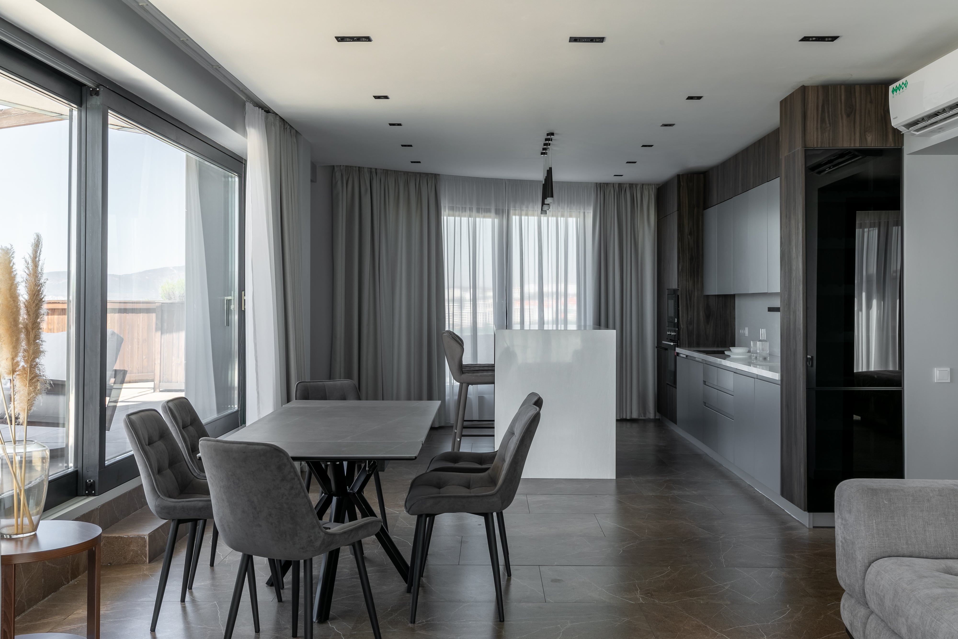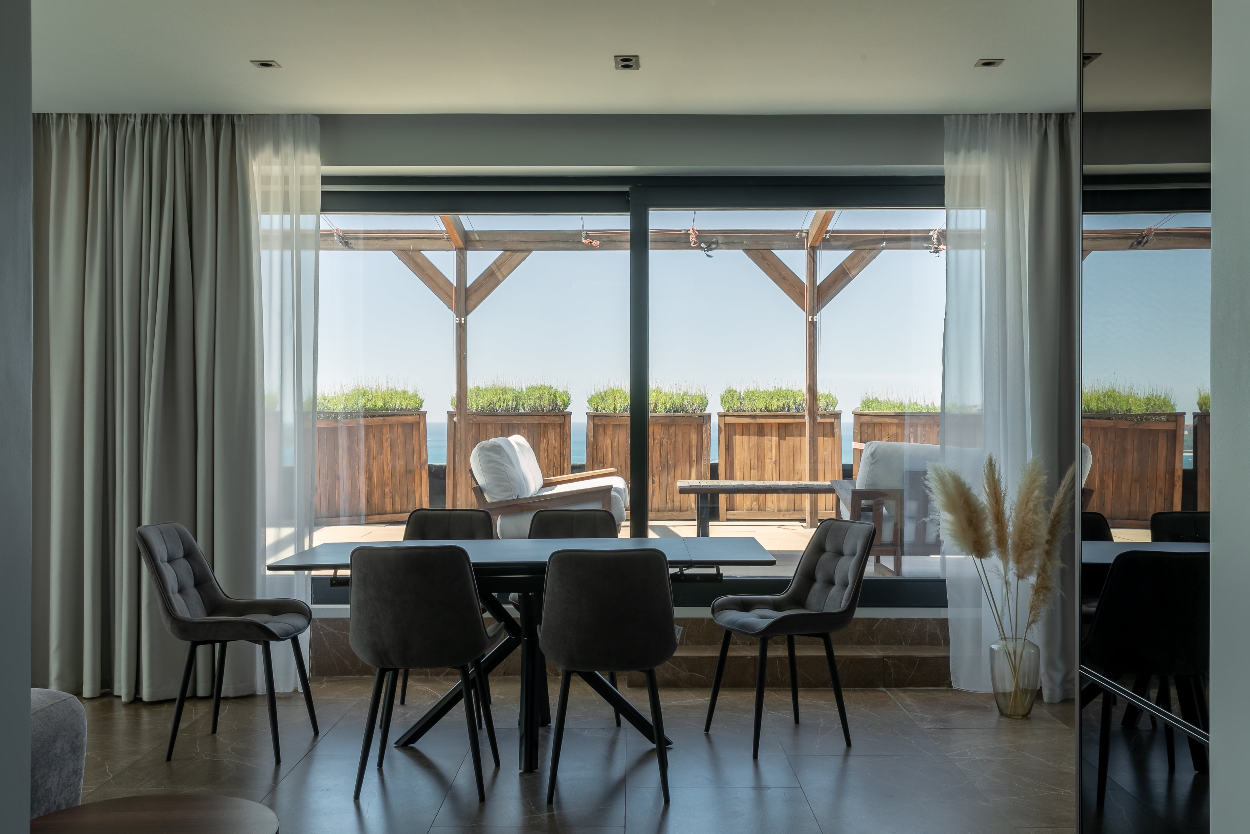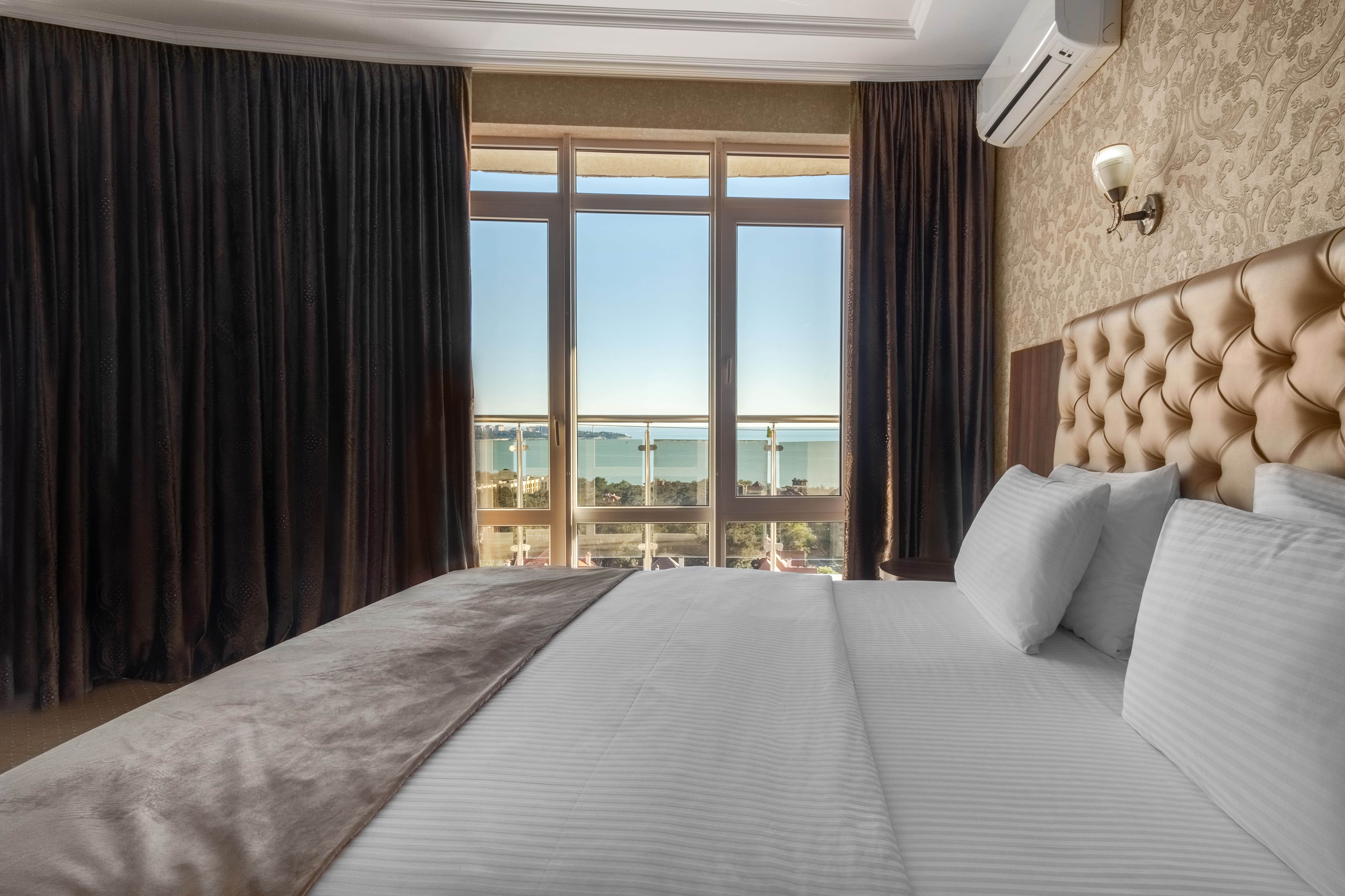 Уютный двухкомнатный номер с современным ремонтом и интерьером с видом на море/горы.